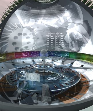 „Das von Ken Adam oft verwendete und ikonisch gewordene Kreismotiv lässt Raummodelle entstehen, in denen Zeit beschleunigt, verlangsamt, angehalten oder zurückgedreht werden kann. Es sind panoptische Innenräume, wie z.B. die „Exhaust Chamber“ aus dem Film MOONRAKER, die kein Außen mehr kennen. Er nimmt damit kongenial vorweg, was wir heute, in der hybriden Überlagerung von physischen und virtuellen Raumerfahrungen, Immersion nennen: Ein Innenraum wird zum alle Sinne betörenden Weltmodell.