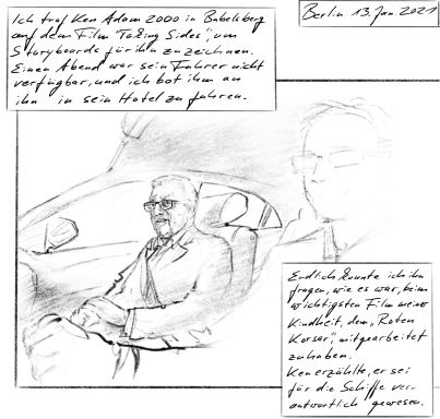 Axel Eichhorst arbeitet als Concept- und Storyboard-Artist und als freier Künstler. Eine seiner ersten Tätigkeiten als Storyboarder führte ihn zu István Szabós TAKING SIDES (GB, F, D 2001), mit Ken Adam als Production Designer. Er erinnert sich gut an ein ausführliches Gespräch während einer gemeinsamen Autofahrt. Heute ist Eichhorst vorrangig für internationale Ko-Produktionen tätig, zuletzt für THE MATRIX 4 (USA, AUS 2021, Regie: Lana Wachowski).