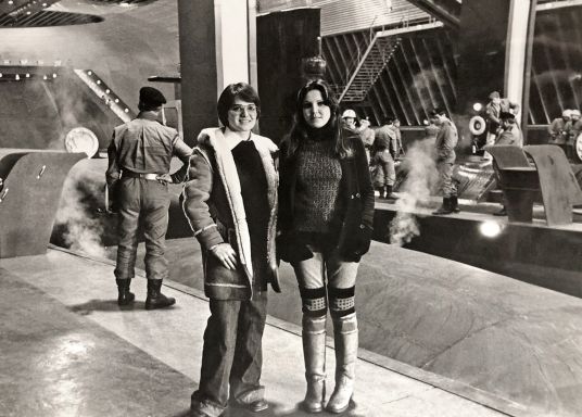 „Nach meiner Arbeit als Location-Researcher arbeitete ich im Art Department der James-Bond-Filme THE SPY WHO LOVED ME und MOONRAKER – mit Ken Adam, Peter Lamont, Ernie Archer und all den anderen. Hier bin ich mit Tina Broccoli (rechts) in der ‚007-Stage-Halle‘ zu sehen.“ Set des ‚Liparus-Supertanker‘, 1977, Foto: privat