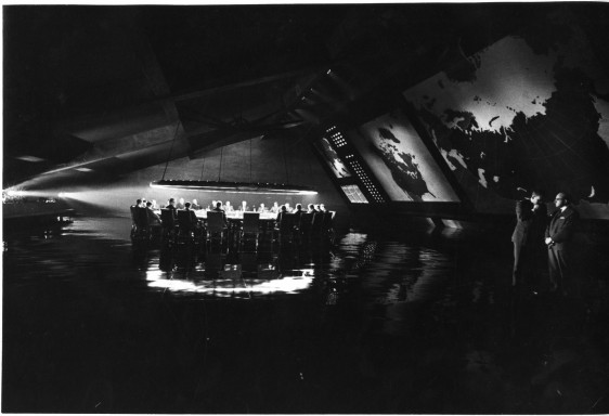 Dabei werden seine Machträume oft in der Tiefe verortet und mit allem Komfort der neuesten Technologien ausgestattet. Diese „stilisierte Hyperrealität“, wie es Ken Adam selbst wiederholt genannt hat, wendet er auch im „War Room“ an. Er kreiert einen technisch hochkomplexen, doppeldeutigen und scheinbar unzerstörbaren Bunkerraum, der ein Überleben einer Elite nach einem Atomkrieg vortäuscht.