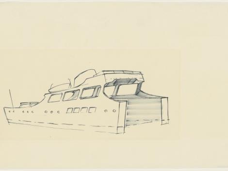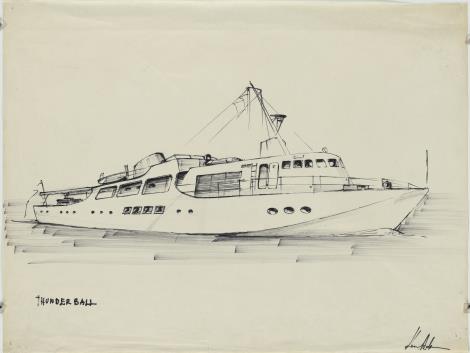 "Dann gab es [...] Largos super schnelle Yacht, die 'Disco Volante'. Sie sollte wie eine normale Luxusyacht aussehen und erst im letzten Moment, wenn der Schurke flieht, würde sich ihr 'Torpedo'-Charakter offenbaren. [...] Camouflage war die einzige Lösung. Ich versteckte das Tragflächenboot unter einer zweiten Haut, einer Art Katamaran, der einen eigenen Antrieb hatte. Hülle und Kern bildeten optisch eine Einheit, waren aber technisch nur durch zwei slip bolts miteinander verbunden und ließen sich blitzschnell voneinander lösen."