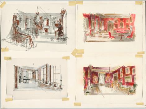 "In the scene where he eats soup with the spoon for the first time, I think you'll find there are maybe three paintings on the walls – many are removed as part of the King's cure – the table and one chair where he eats, and a few other props, but nothing else in this rather nicely proportioned Georgian room. The set was reduced to its bare essentials. And that, to me, is production design. It's to help the dramatic theme." (Ken Adam)