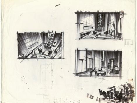 "Schwarz melierter Marmor an den Wänden, hell spiegelnder Marmorboden, dunkle Holztöne bei den Kassen, Art-déco-Leuchten, Messinggeländer an Empore und Treppe – die Materialanmutungen sind auf Prunk und die stilvolle Präsentation von Reichtum hin ausgelegt. Man könnte sagen, eine stärkere Visualisierung der Macht und Finanzkraft einer Bank ist schwer vorstellbar und zugleich liegt der Design-Konzeption jeglicher Anklang an die realistische Re-Präsentation eines Bankgebäudes und seines Interieurs gänzlich fern. Das bis dahin größte je in einem Major Studio realisierte Set – fast schon in den Ausmaßen eines James-Bond-Films, wie Ken Adam anmerkte – bezieht seine Faszination und seine Überzeugungskraft unmittelbar aus der präzisen visuellen Idee, nicht aus einer Imitation oder Anverwandlung vorhandener Architektur, und ist damit für den großen Production Designer geradezu typisch."