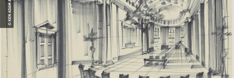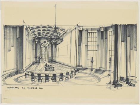 "Den Konferenzraum für 'M' habe ich in Pinewood entworfen und gebaut, eine riesige neoklassizistische Halle, deren Tapeten sich auf Knopfdruck nach oben bewegten und Landkarten freigaben, wodurch das georgianische Ambiente eine funktionale militärische Anmutung bekam."